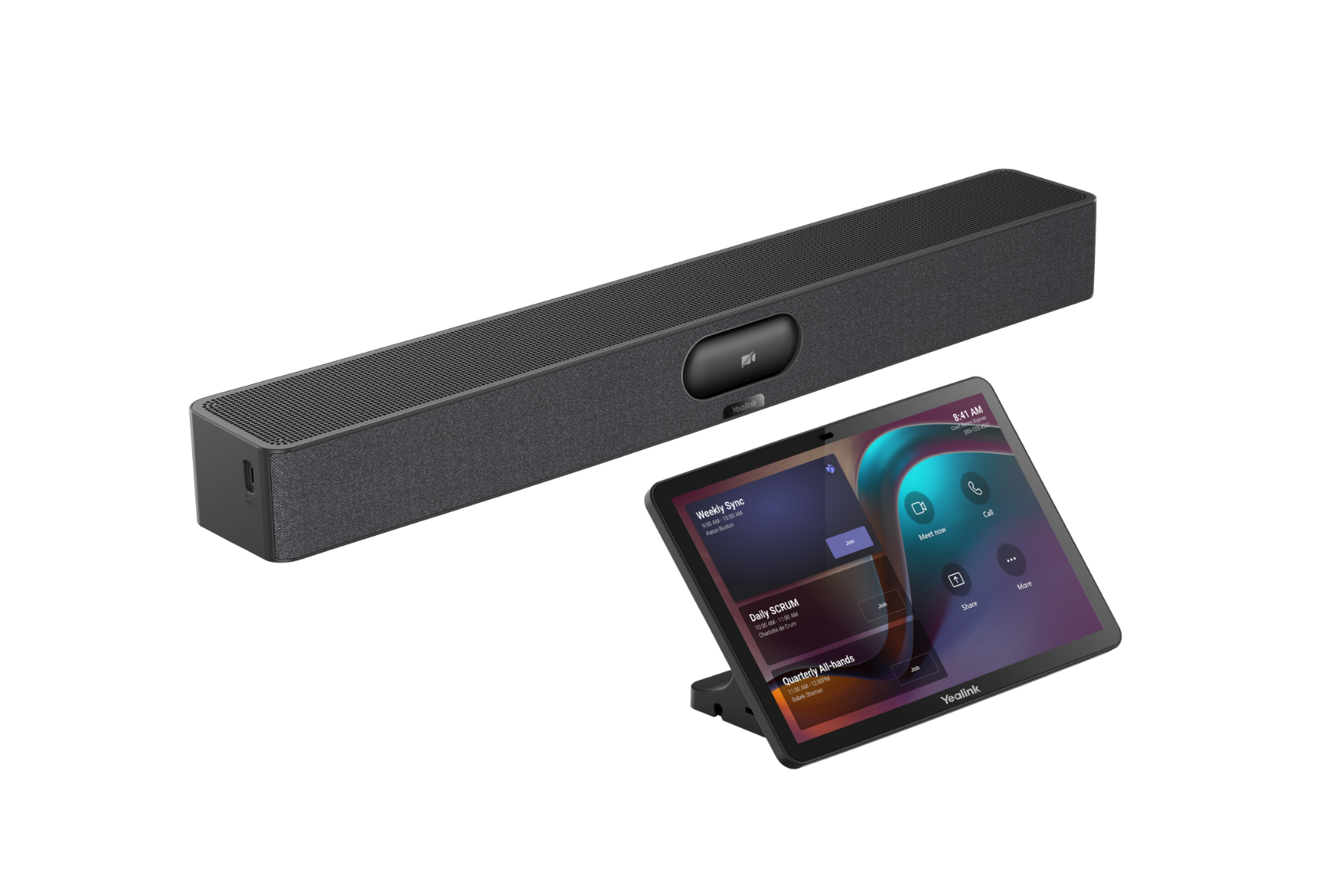 Yealink MeetingBar A50 הנה מערכת וידאו קונפרנס הכל-באחד לחדרים בינוניים עד גדולים. מוצר זה מספק יכולות תקשורת אודיו ווידאו מתקדמות, המופעלות על ידי טכנולוגיית בינה מלאכותית מתקדמת, המבטיחה צליל צלול כבדולח וויזואליה באיכות אולטרה HD.
